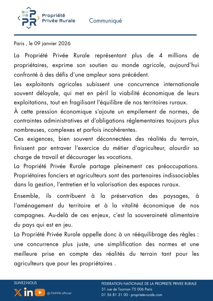 Crise agricole – Communiqué de la FNPPR du 9 janvier 2026